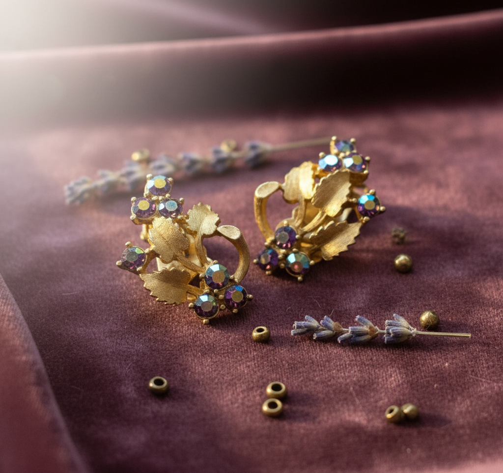 Vintage glamour meets whimsical sparkle in these charming 1940s clip-on earrings.