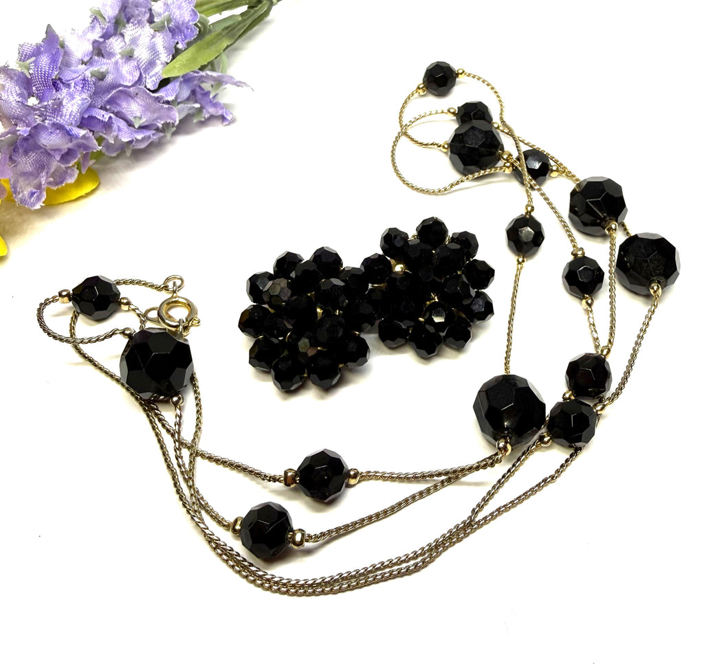 This is a killer of a deal.. glass floral cluster earrings from 1950s/1960s along with a gorgeous black and cold beaded necklace from Korea. It's a great marriage of jewelry.