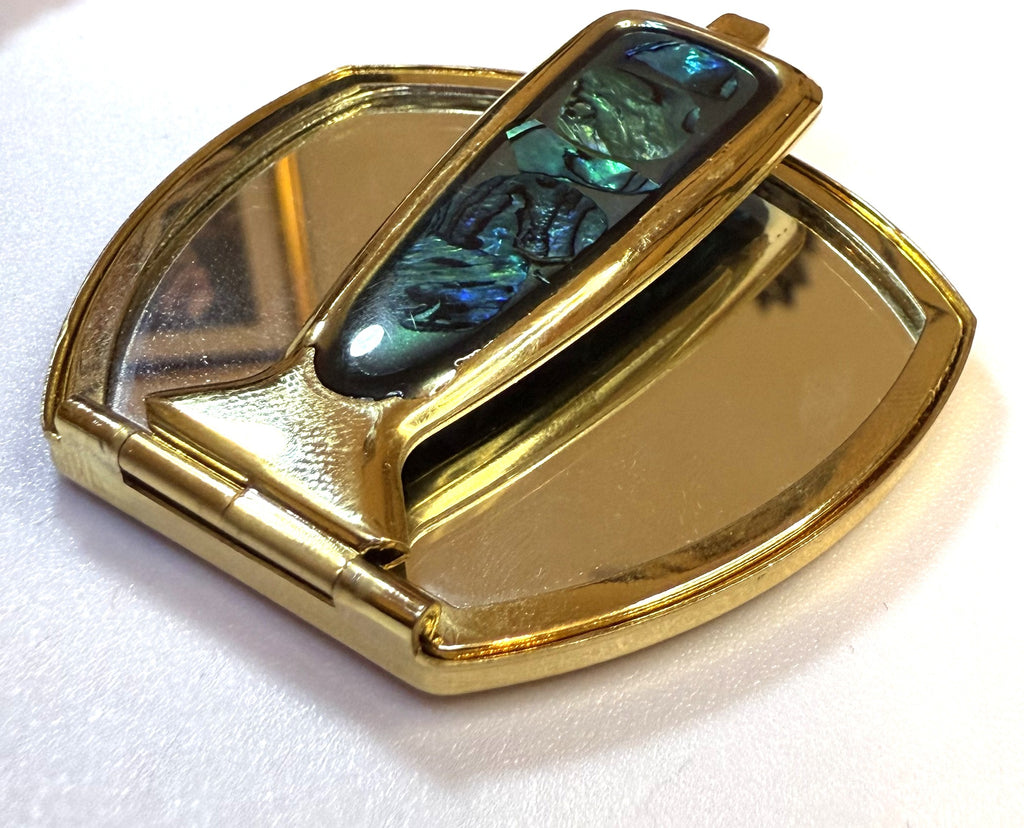 This is a stunning abalone shell foldable pocket mirror that is in great condition.