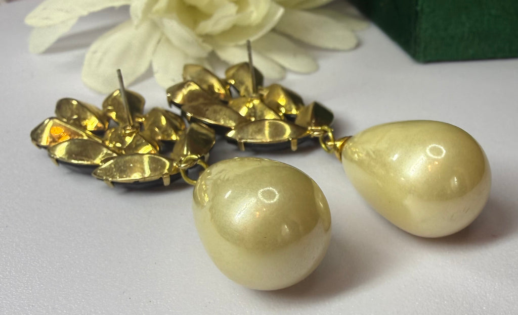Get ready to channel your inner diva with these Vintage Black Pronged Rhinestone and Faux Pearl Dangle Earrings! Dripping in Hollywood glamour, they’ll have you feeling like a star on the red carpet (or at least the grocery store). Sparkle and shine without breaking the bank—who knew bling could be this elegant the modern world?
