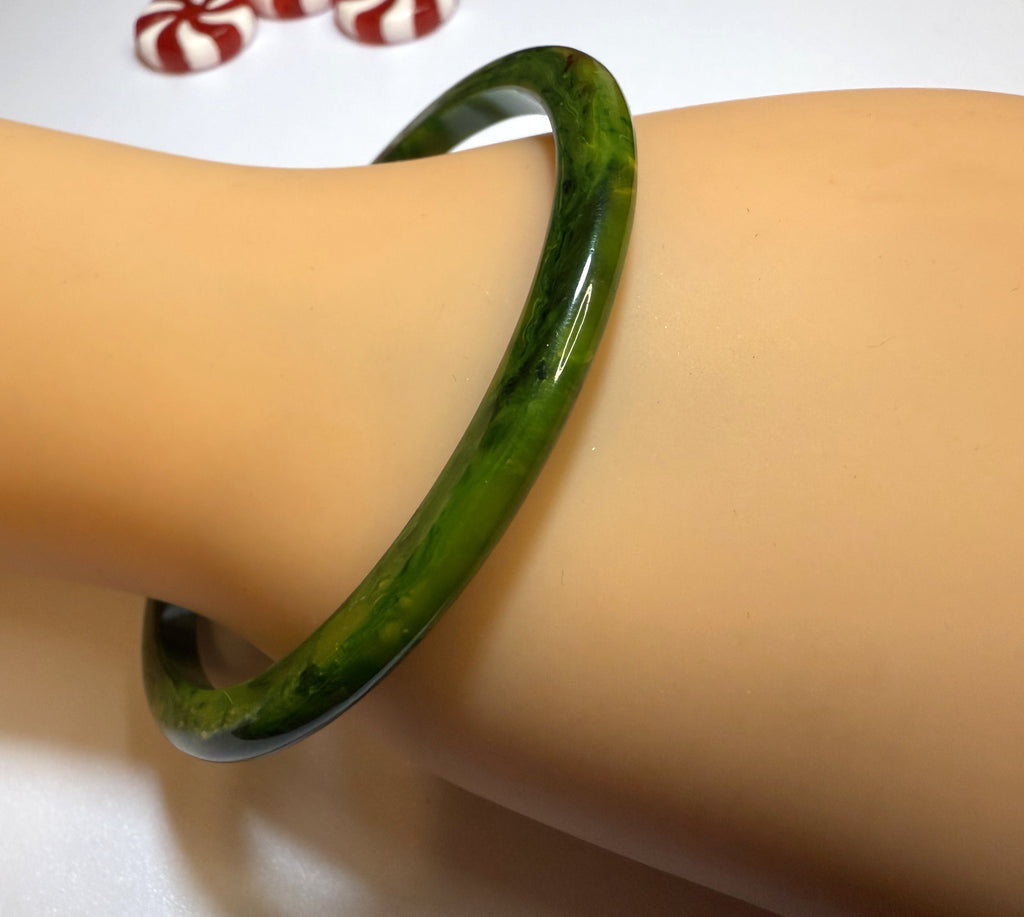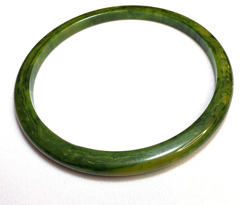 Lightweight yet substantial, bakelite bangles were beloved for their durability and distinctive warmth to the touch. A timeless statement piece perfect for collectors and vintage enthusiasts alike.